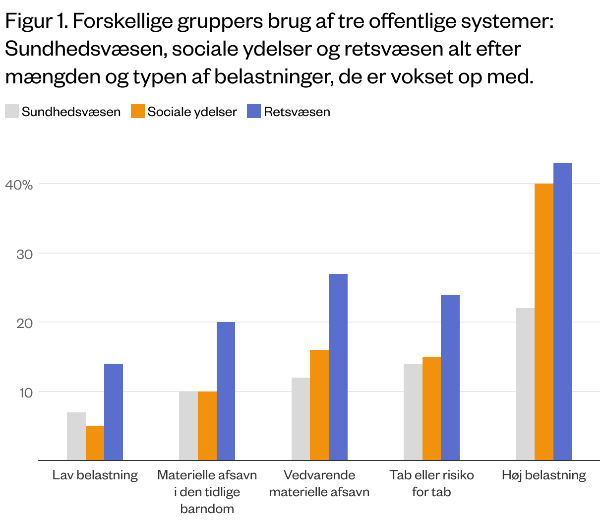 Tidligere forskningsstudier har på tilsvarende vis identificeret en sammenhæng mellem belastninger tidligt i livet og fx øget risiko for dårligt helbred, socioøkonomiske problemer eller øget kriminalitet. Her har det dog typisk kun været én type belastning, der er blevet analyseret eller én type brug af offentlige ydelser.
