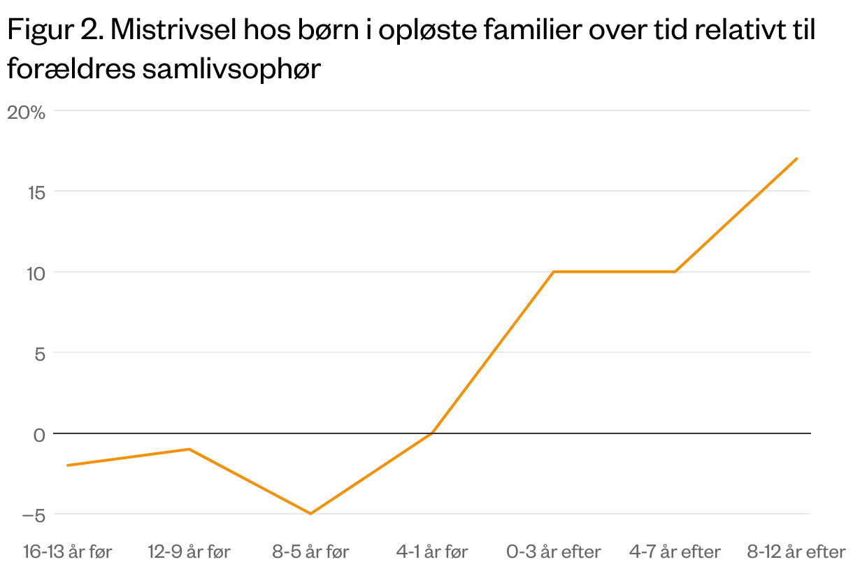 Og ja, forældrenes samlivsophør i sig selv kan ses på børnenes trivsel. Både på kort sigt – i årene lige efter bruddet – men også mange år senere.