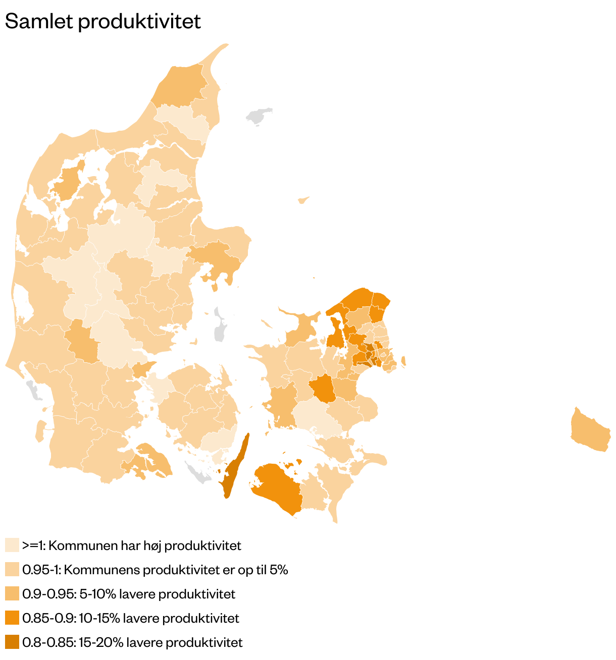 Med en finmasket analysemodel har forskere sammenlignet alle danske kommuners serviceniveau og produktivitet og forskellen er markant. I de mest effektive kommuner får borgerne 20-25% bedre offentlig service for deres skattekroner, og analysen peger på både sygefravær og antallet af akademiske ansatte på rådhuset som mulige årsager til forskellene i kommunernes produktivitet.